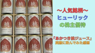 ヒューリック(3003)の株主優待カタログで選んだ「あかつき桃ジュース」を実際に飲んでレビュー。味の濃さや甘さ、市販品との違い、メリット・デメリットを正直に解説します。どれを選ぶか迷っている方の参考になる内容です。
